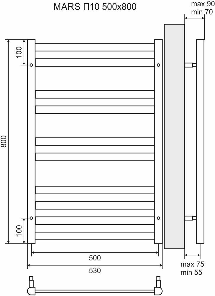 Водяной полотенцесушитель Lemark Mars П10 LM35810 500x800