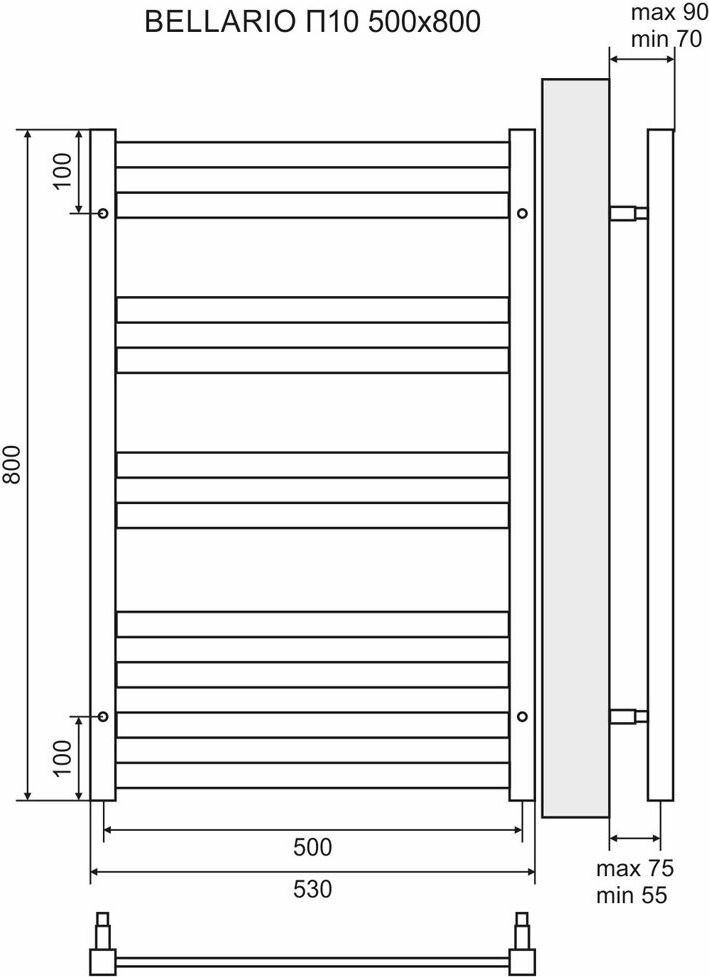 Lemark Полотенцесушитель водяной Bellario LM68810, П10 500x800, ширина 53 см, высота 80 см