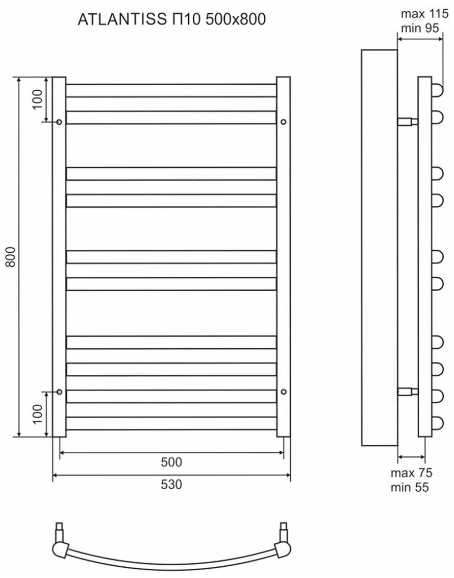 Полотенцесушитель ATLANTISS 50х80 черный нижнее подключение