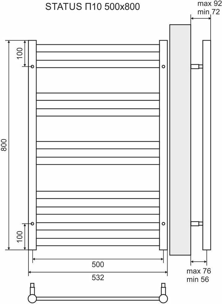 Lemark Полотенцесушитель водяной Status LM44810, П10 500x800, ширина 53.2 см, высота 80 см