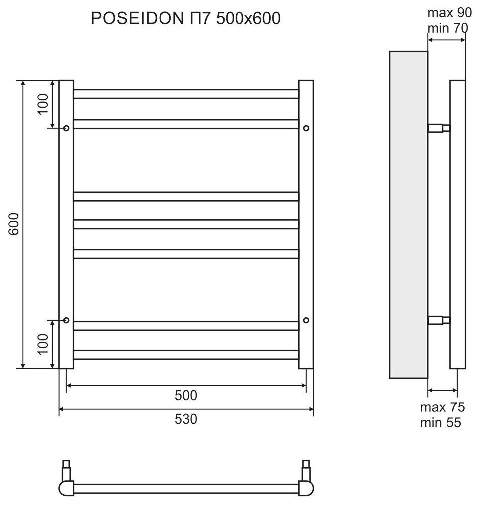 Электрический полотенцесушитель Lemark Poseldon П7 LM42607E 500x600, левый/правый