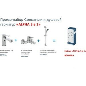 Промо-набор 3 в 1 смесители и душевой гарнитур Ideal Standard ALPHA BD004AA