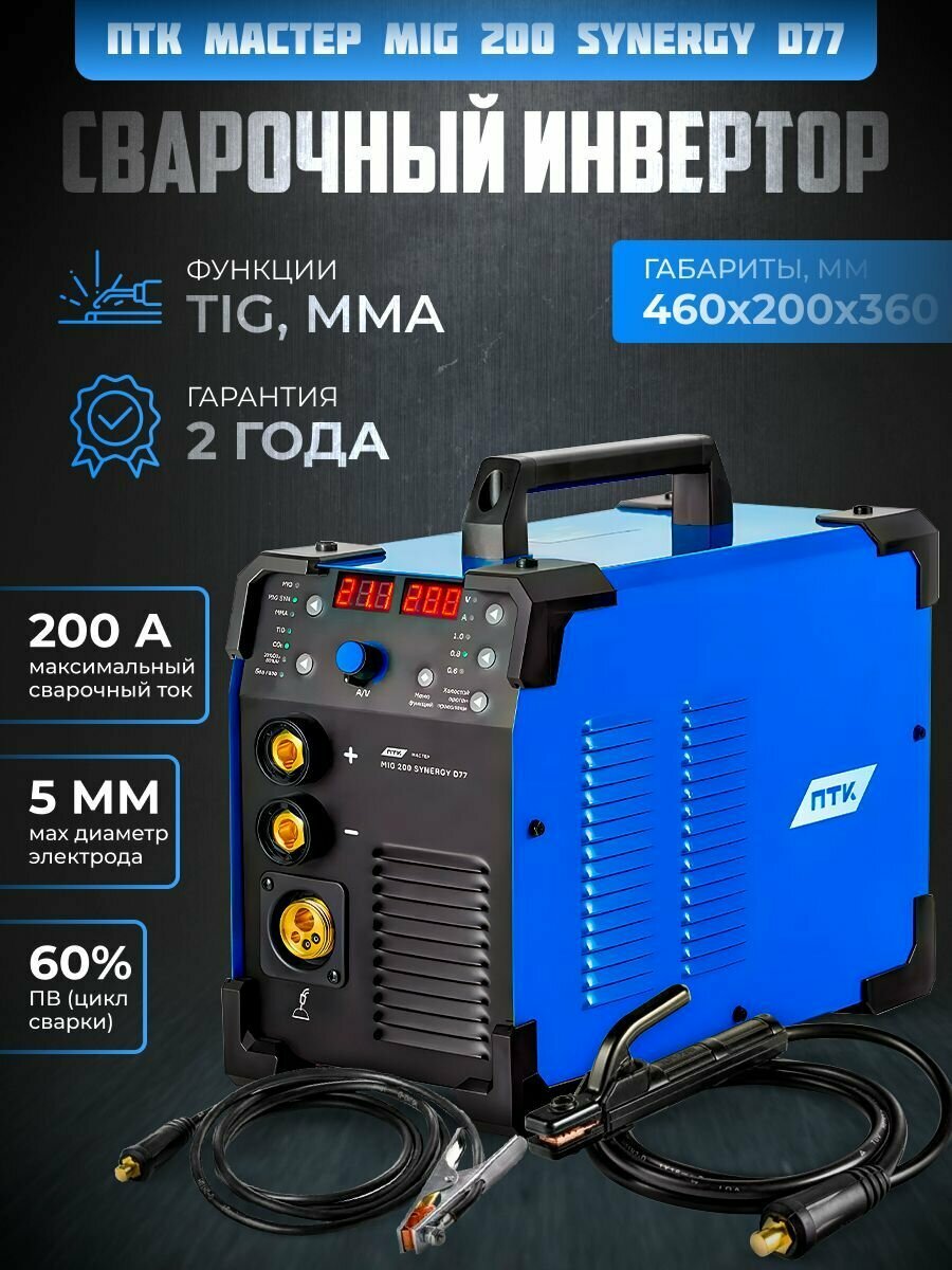 Инвертор сварочный ПТК мастер MIG200 Synergy D77
