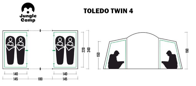 Ниже Вы можете прочитать отзывы на Палатка Jungle Camp Toledo Twin 4 зеленый, ознакомится с подробными характеристиками, посмотреть интересные обзоры и фотографии на Палатка Jungle Camp Toledo Twin 4 зеленый.