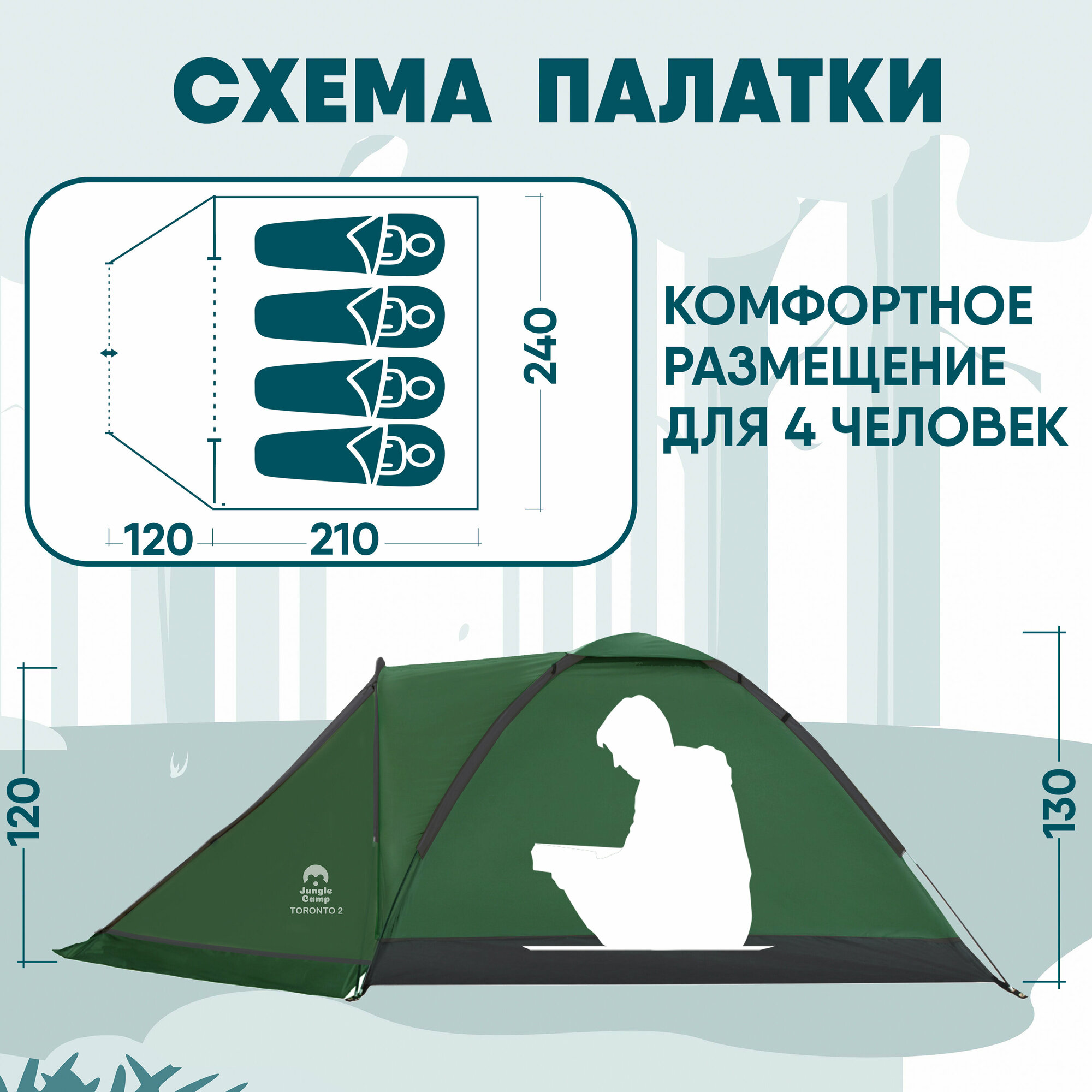 Палатка четырехместная JUNGLE CAMP Toronto 4, зеленый (70819)