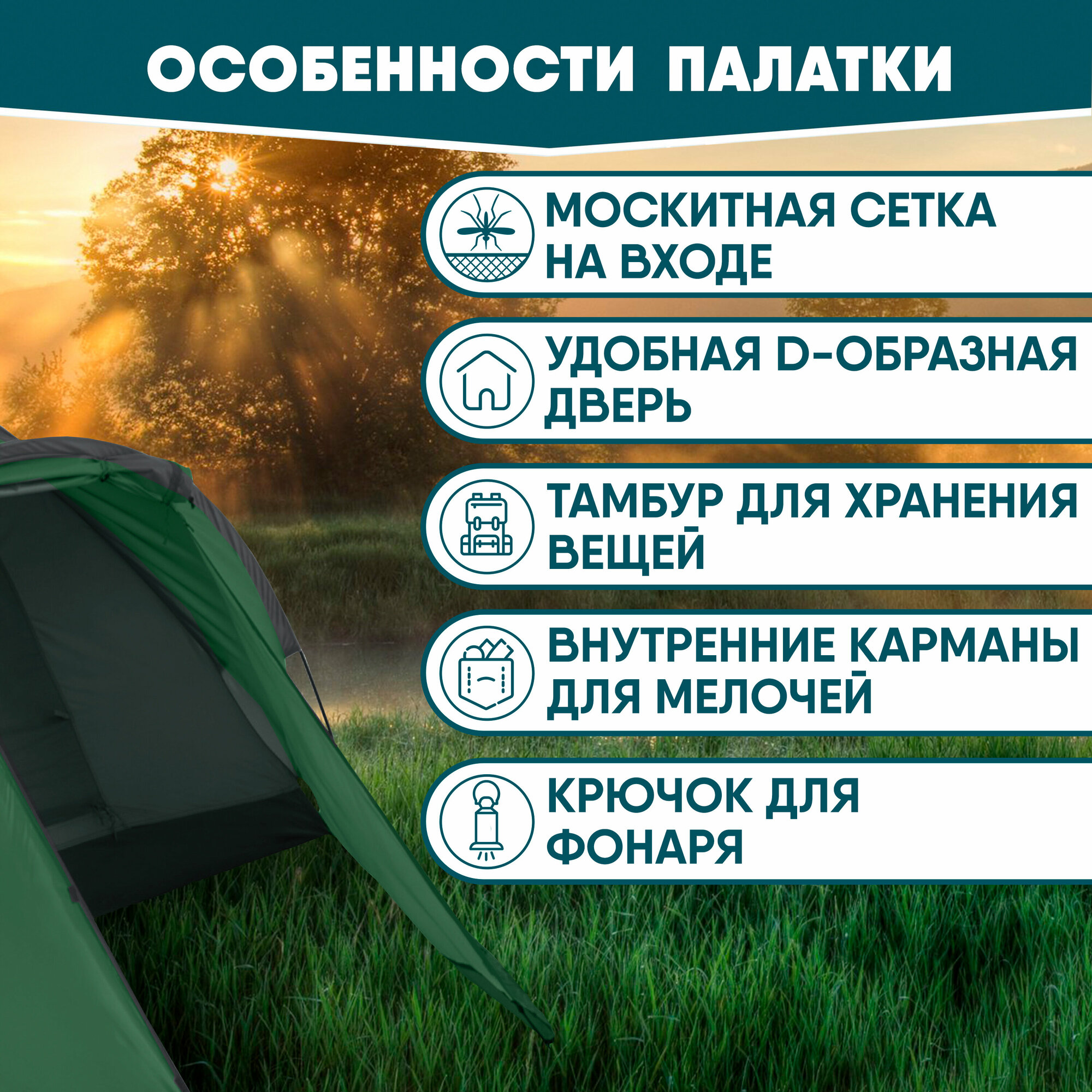 Палатка двухместная TREK PLANET "Toronto 2", цвет: т.зеленый/оливковый