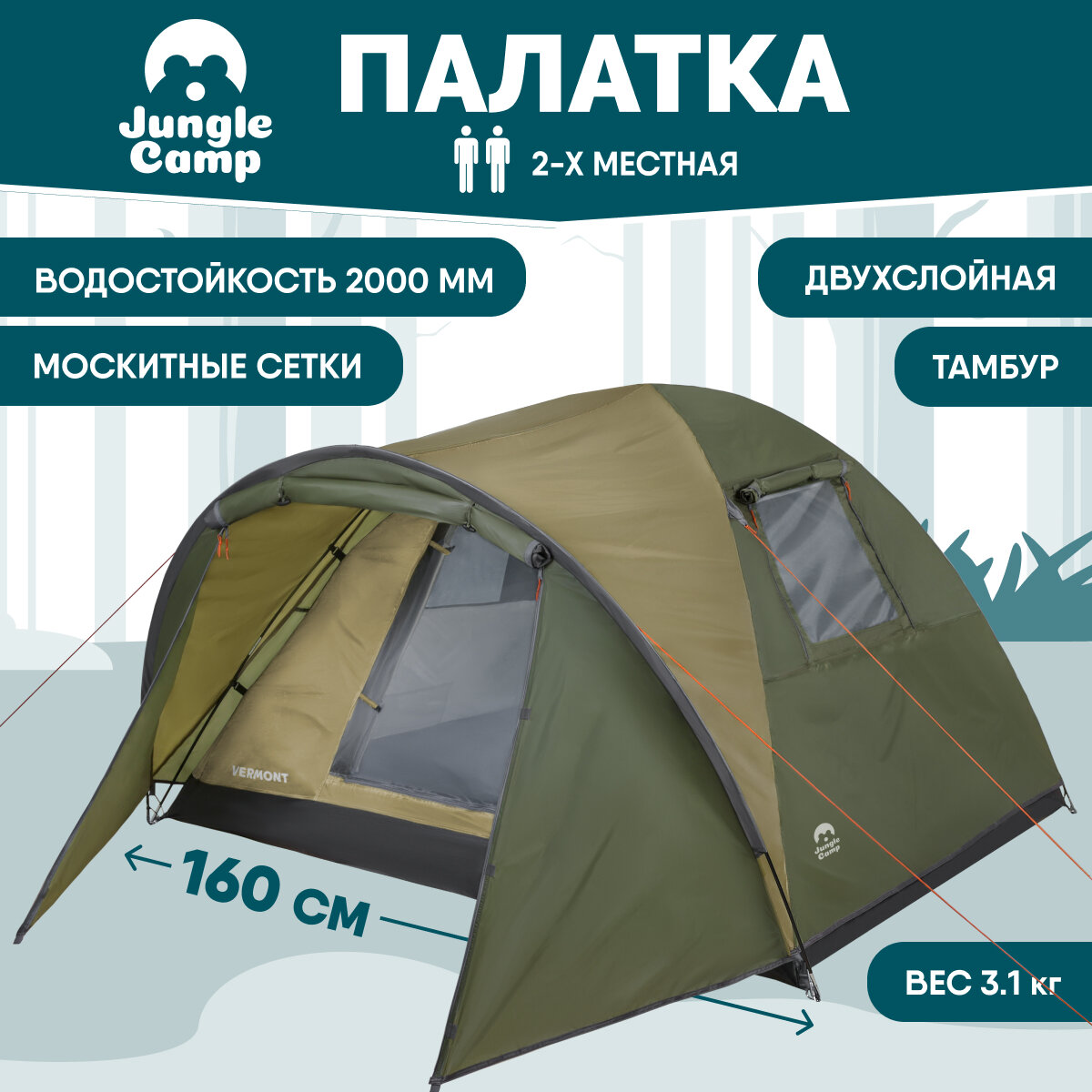 Палатка двухместная JUNGLE CAMP Vermont 2, цвет: зеленый интересное: