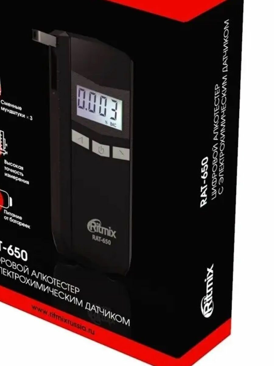 Ниже Вы можете прочитать отзывы на Алкотестер Ritmix RAT-650, ознакомится с подробными характеристиками, посмотреть интересные обзоры и фотографии на Алкотестер Ritmix RAT-650.