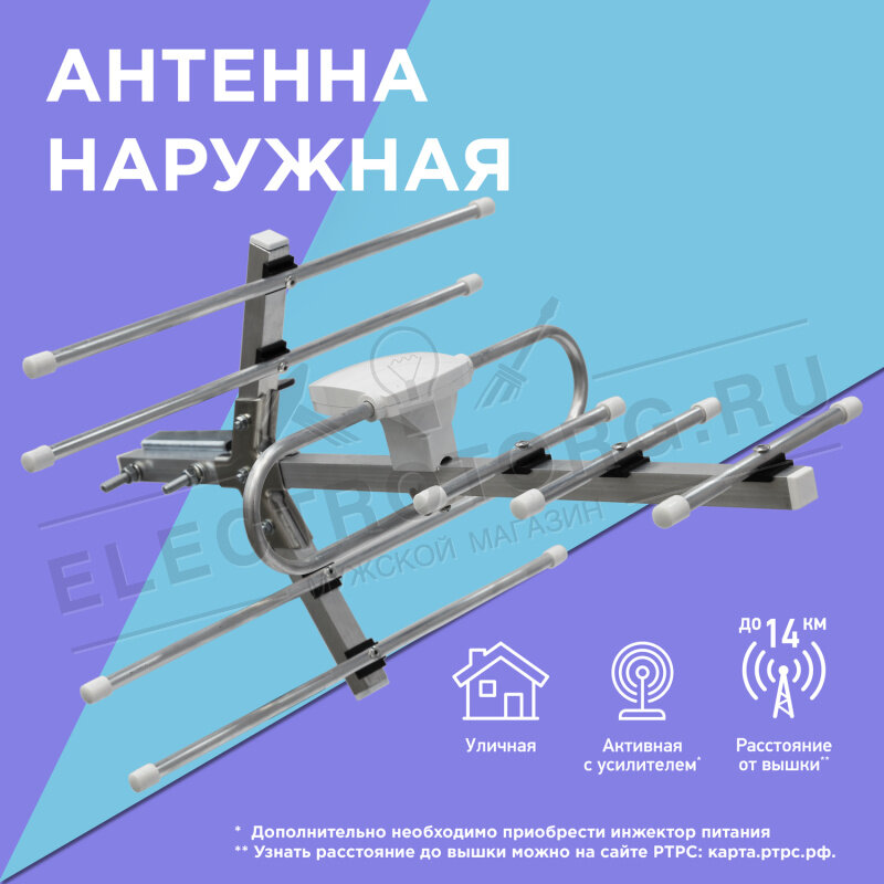 Антенна уличная для цифрового телевидения пассивная DVB-T2, 8 дБи