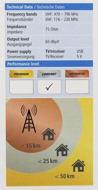 Антенна телевизионная Hama 00121702 активная, черный, 1.9 м