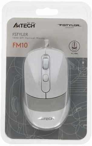 Купить Мышь A4TECH Fstyler FM10, оптическая, проводная, USB, белый и серый [fm10 white]