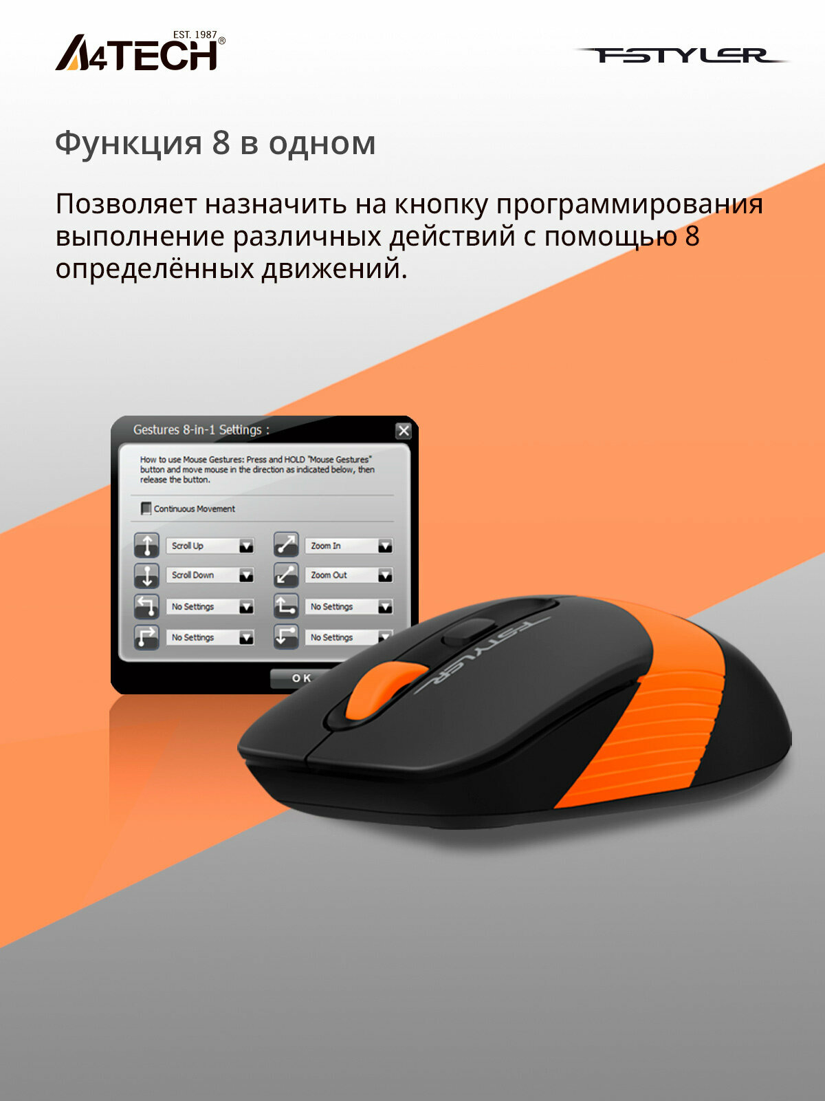 Беспроводная мышь A4Tech Fstyler FG10S, оранжевый