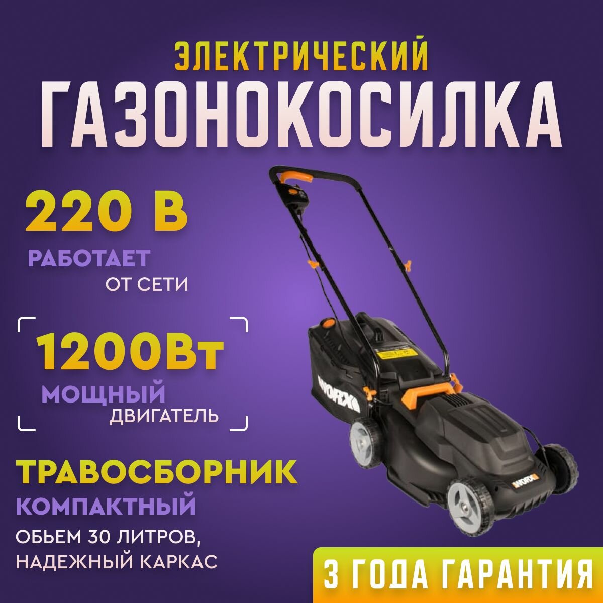 Газонокосилка WORX WG713E 1200Вт 34см электрическая