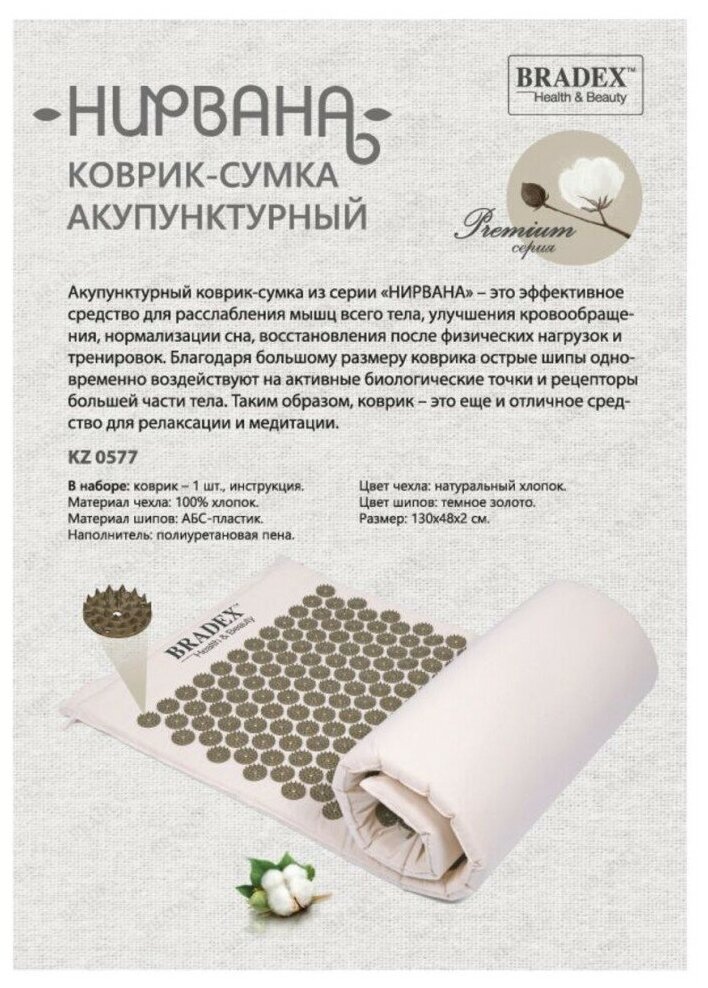 Коврик акупунктурный Bradex Нирвана Эко KZ 0577 Beige