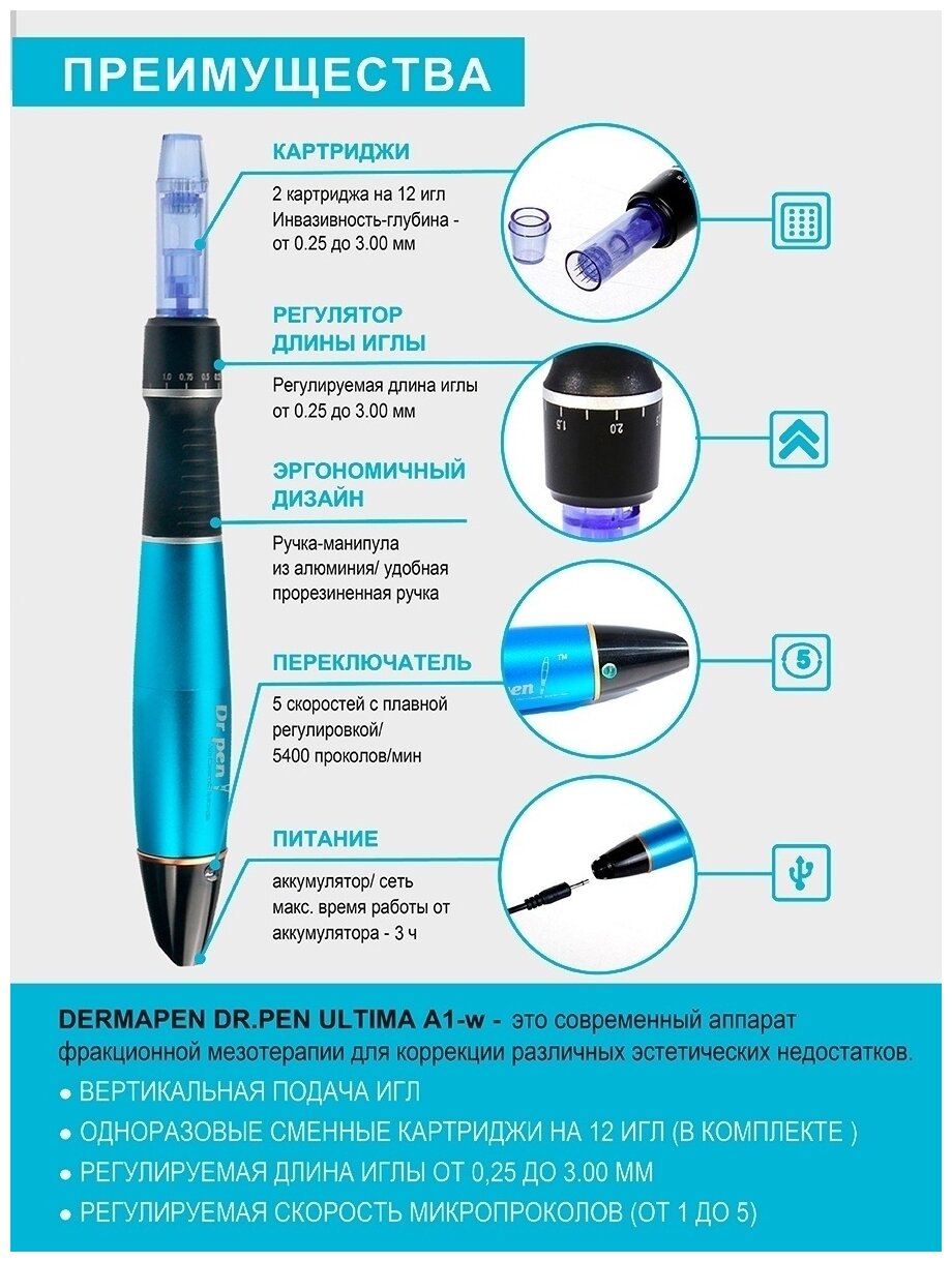 Dr.Pen Аппарат для фракционной мезотерапии Ultima-А1-W Blue интересное: