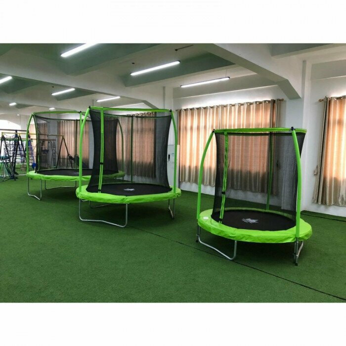 | Плюсы: | В диаметре большой, сетка высокая, устойчивость абсолютная, мат прыгучий и эластичный - в общем, всё для безопасного веселья |