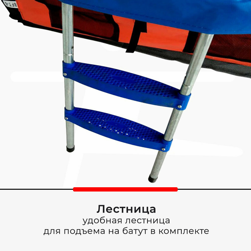 Батут DFC Jump Basket 8FT-JBSK-B 244х244 см синий/красный, внутр.сетка, лестница (244cм)