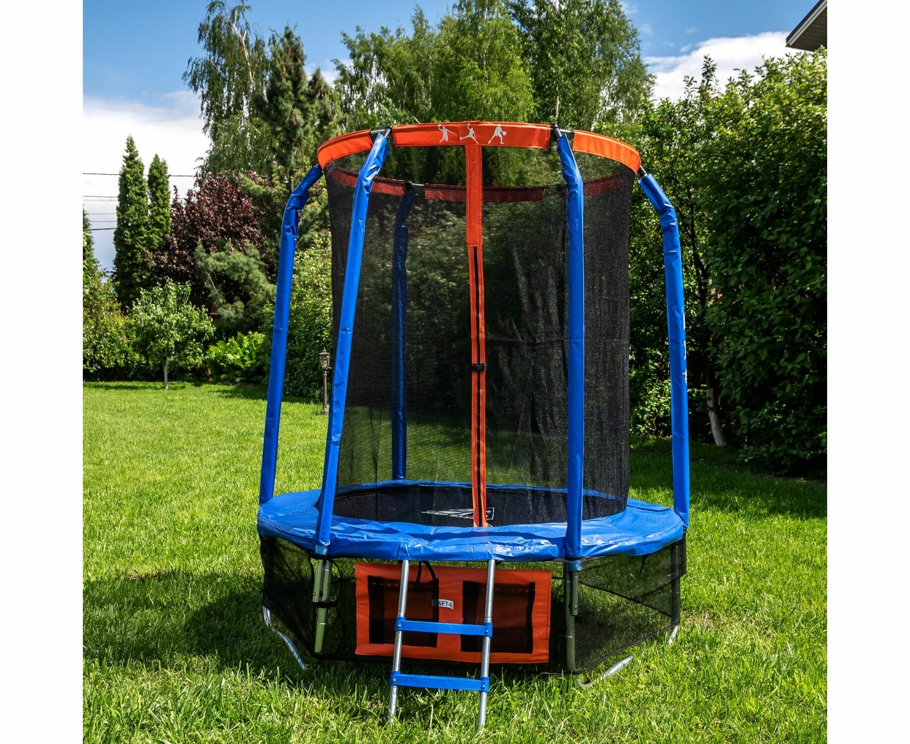 DFC батут с внутренней защитной сеткой Jump Basket 6 футов - 183 см (сине-красный)