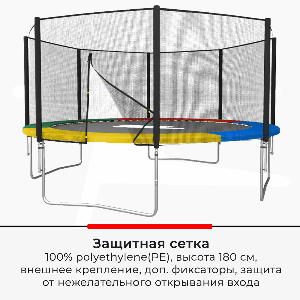 Батут спортивный UNIX line Simple 12 ft Color (outside) диаметр 366 см, 72 пружины, внешняя защитная сетка