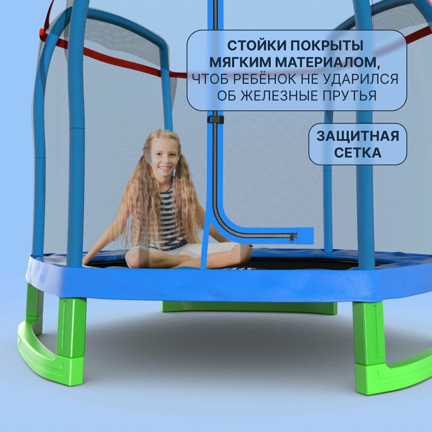 DFC батут с защитной сеткой Jump Kids 7 футов - 210 см (синий)