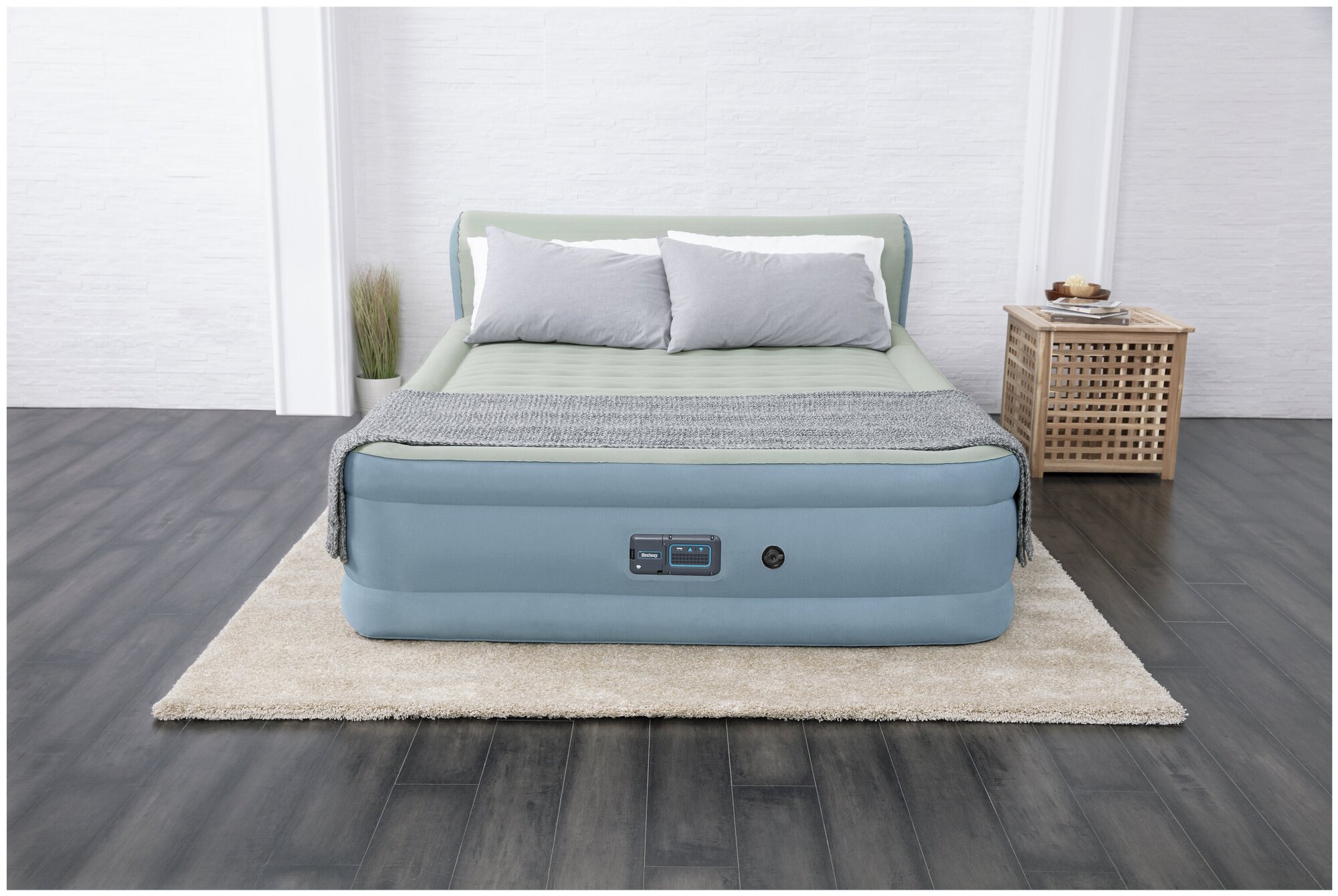 - Отдельное преимущество - возможность регулировать упругостью кровати с специального приложения для телефона. При чём можно управлять кроватью даже будучи в офисе, ресторане, за границей. - Опыт ипользования - 2 года. - Вообще не спускает, можно подкачивать раз в 2 недели. - Есть USB выход для зарядки. - Сама кровать очень прочная, сделанная из самого прочного материала, который есть у Bestway. - Поверхность кровати очень приятная на ощупь. - Подголовник - то, что нужно всем кроватям, это просто лучшее, что есть у этой модели. Подголовник присоединён к каркасу, так что он никогда не отвалится, это как продолжение кровати. Как было сказано выше, и читать, и смотреть видео, и просто сидеть удобно. Однозначно, лучшее что есть в продаже. |