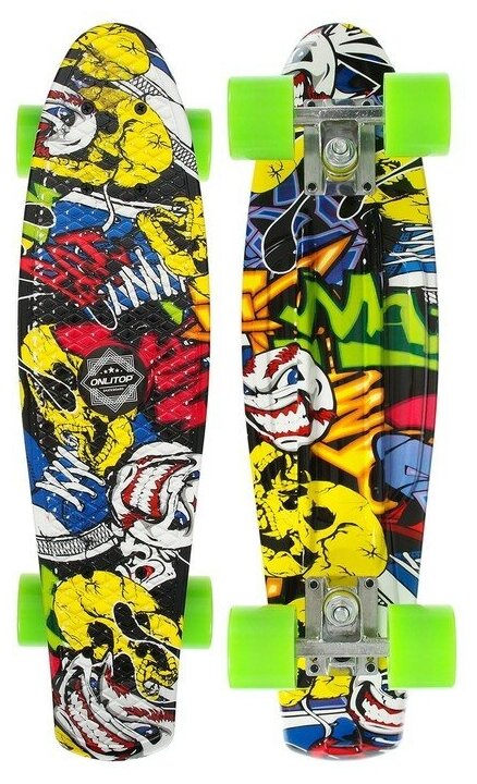 Пенниборд ONLITOP R2206, 56х15 см, колёса PU, АBEC 7, алюминиевая рама, цвет граффити ONLITOP 173858 .