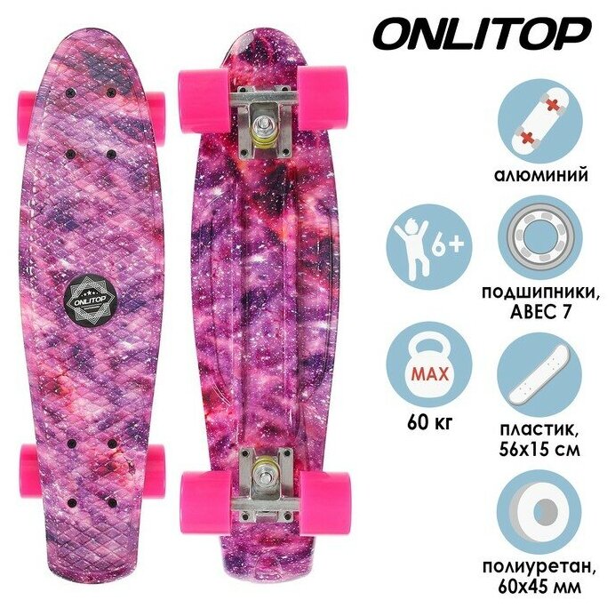 Пенниборд ONLITOP, 55х15 см, колёса PU, ABEC 7, алюминиевая рама, цвет розовый ONLITOP 4636090 .
