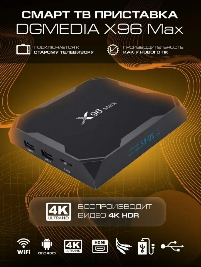 Смарт ТВ приставка DGMedia X96 Max+, Андроид медиаплеер 4/32 Гб, Wi-Fi, 4K, Amlogic S905X3