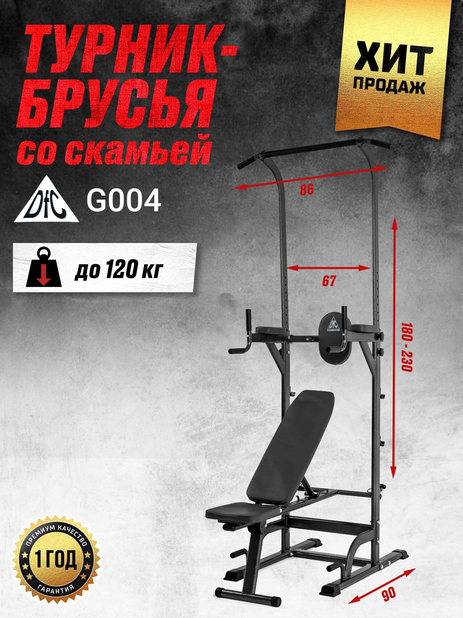 DFC турник-брусья со скамьей Power Tower G004