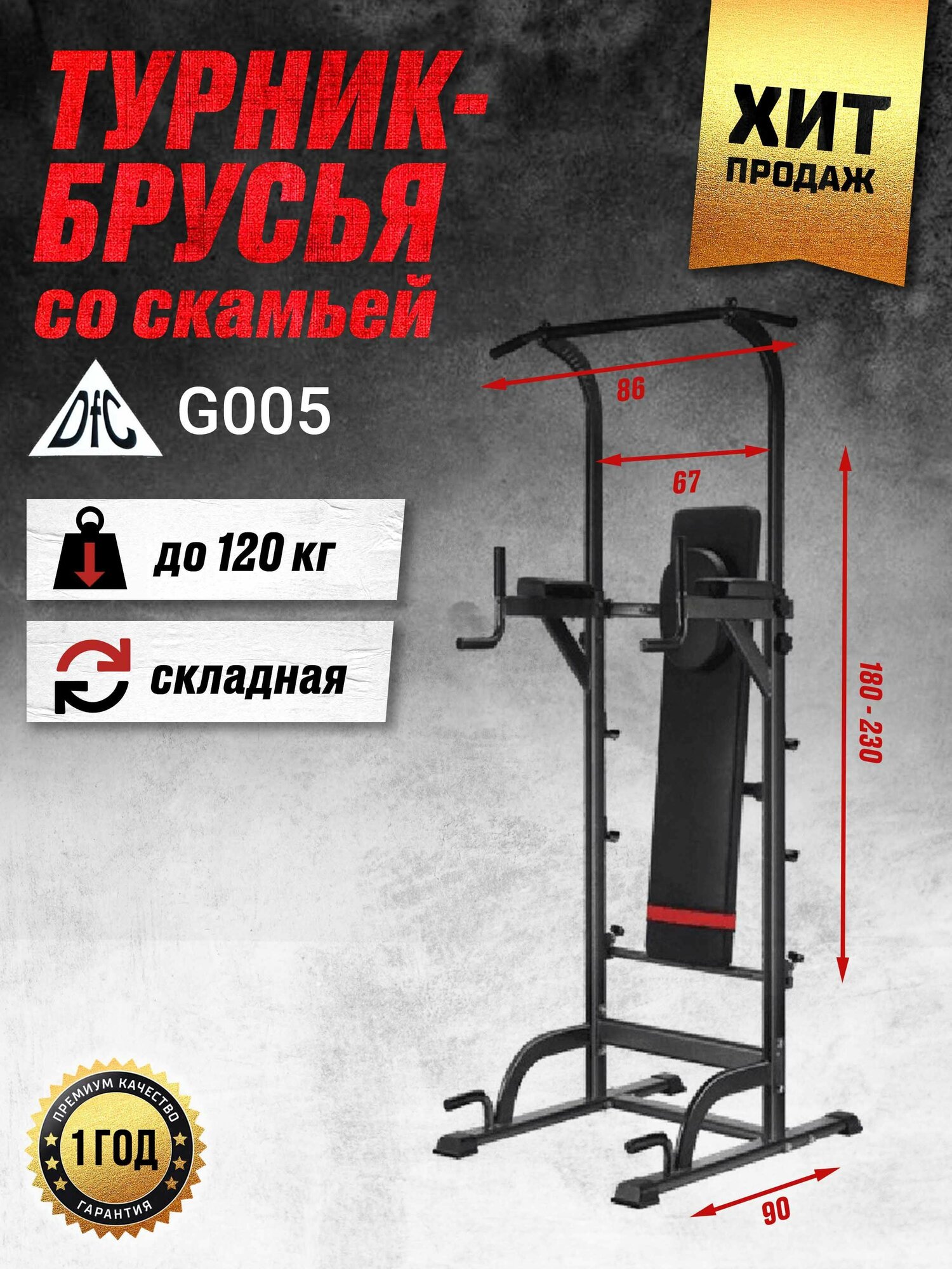 DFC турник-брусья со скамьей Power Tower G005