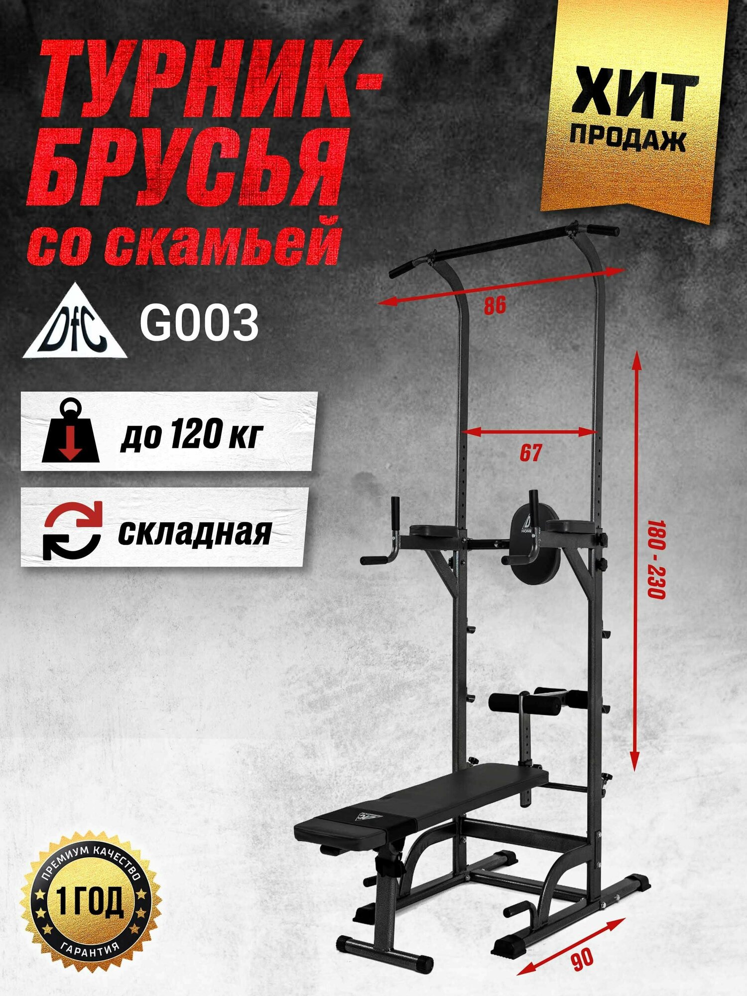 Стойка турник брусья-пресс DFC Power Tower G003 со скамьей