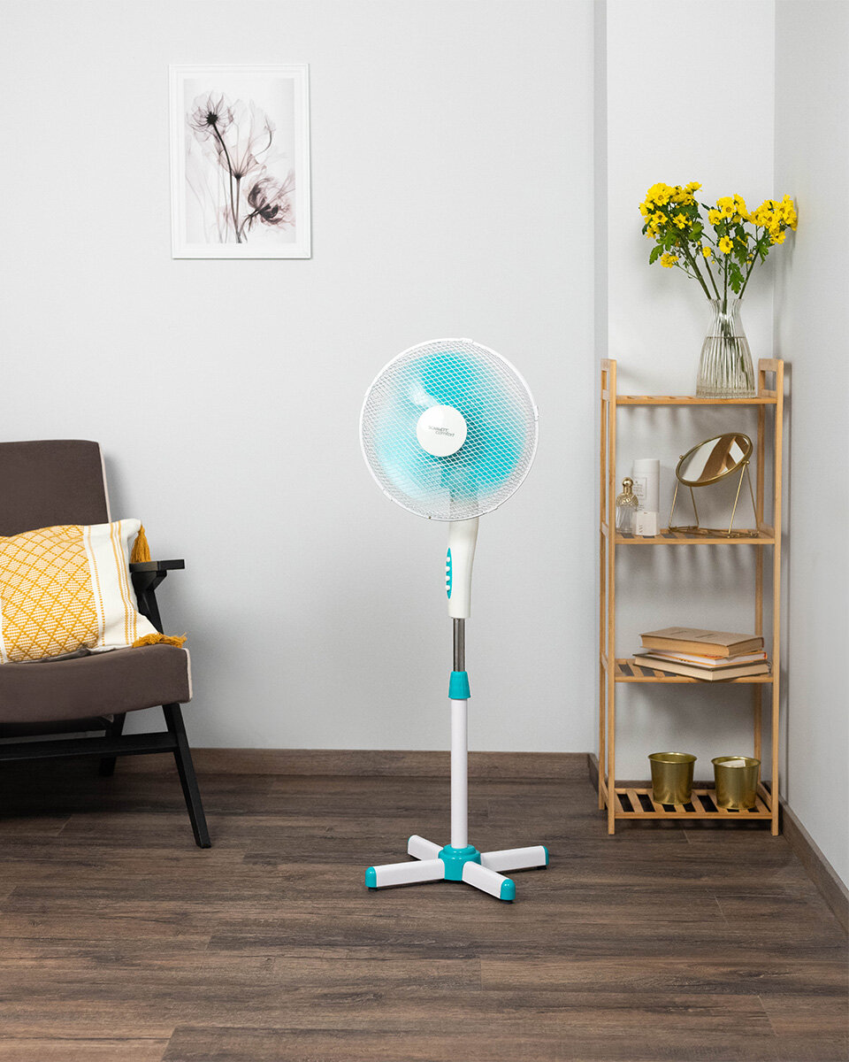 | Отзыв: | Понравилась симпатичная бело-бирюзовая расцветка. В интерьере смотрится ярко и эстетично. Собирать и разбирать несложно. Хорошо обдувает даже на самой меньшей скорости. Вес небольшой, легко переносить в нужное место. Управление механическое, с помощью кнопок, простое и понятное. |