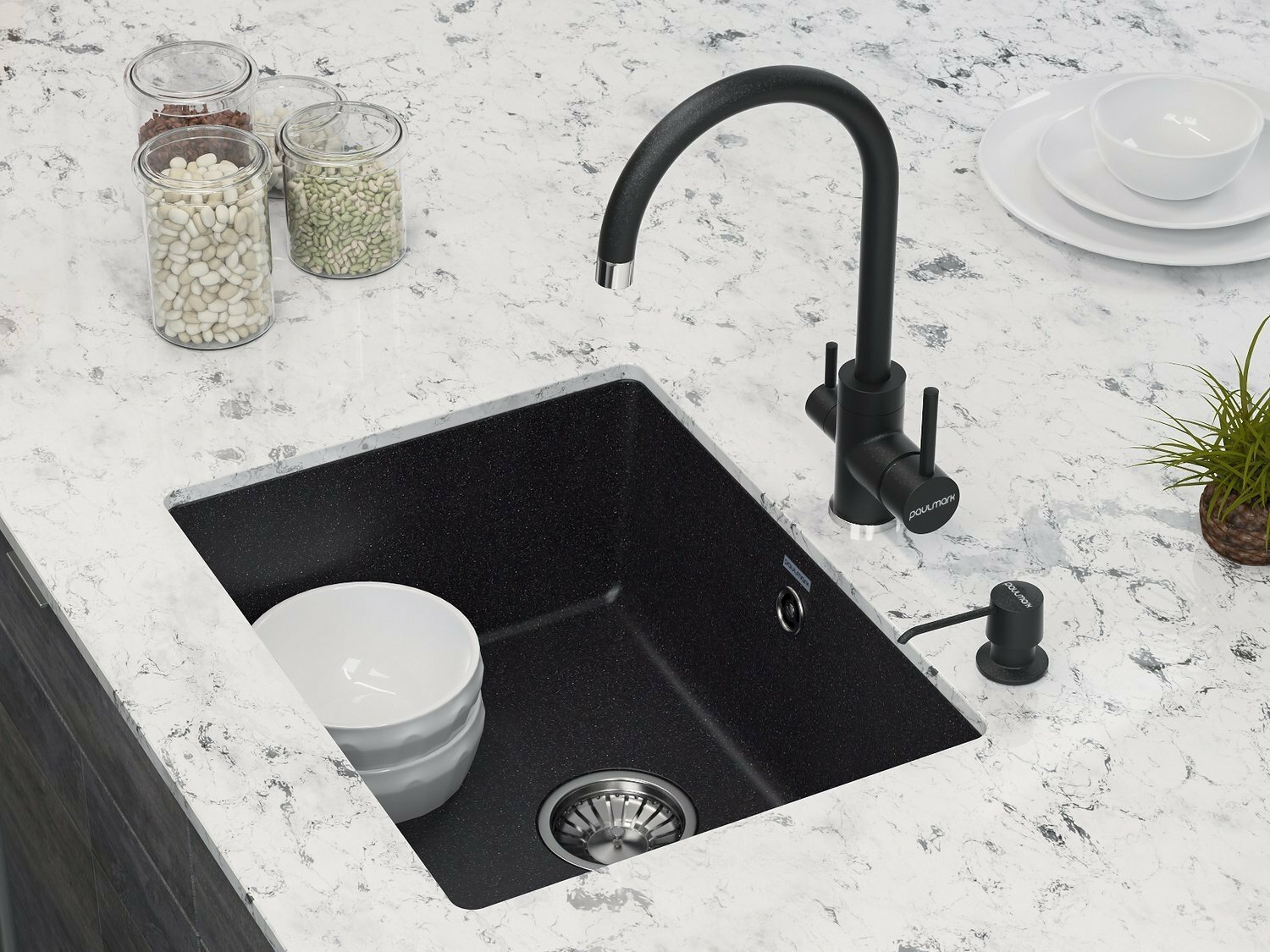 Смесители для кухни Paulmark ESSEN, смеситель, гранит, черный металлик