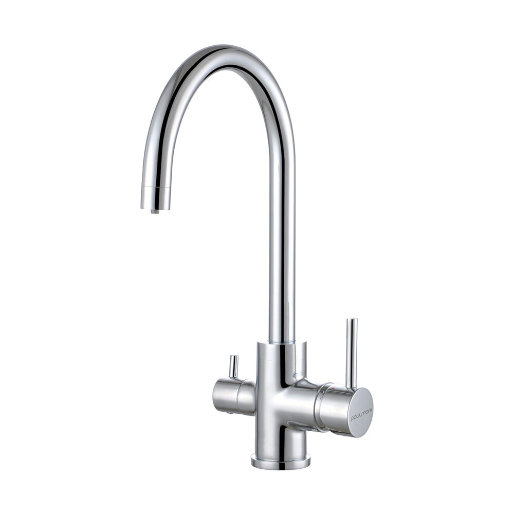 Кухонный смеситель Paulmark ESSEN, подключение к фильтру питьевой воды с отдельным каналом и выпуском, высокий поворотный излив, латунь, на мойку / столешницу, хром, Es213211-CR