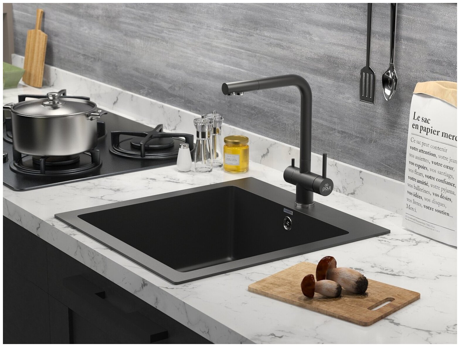 Смеситель Paulmark Skalen Sk213020-308 для кухонной мойки, черный