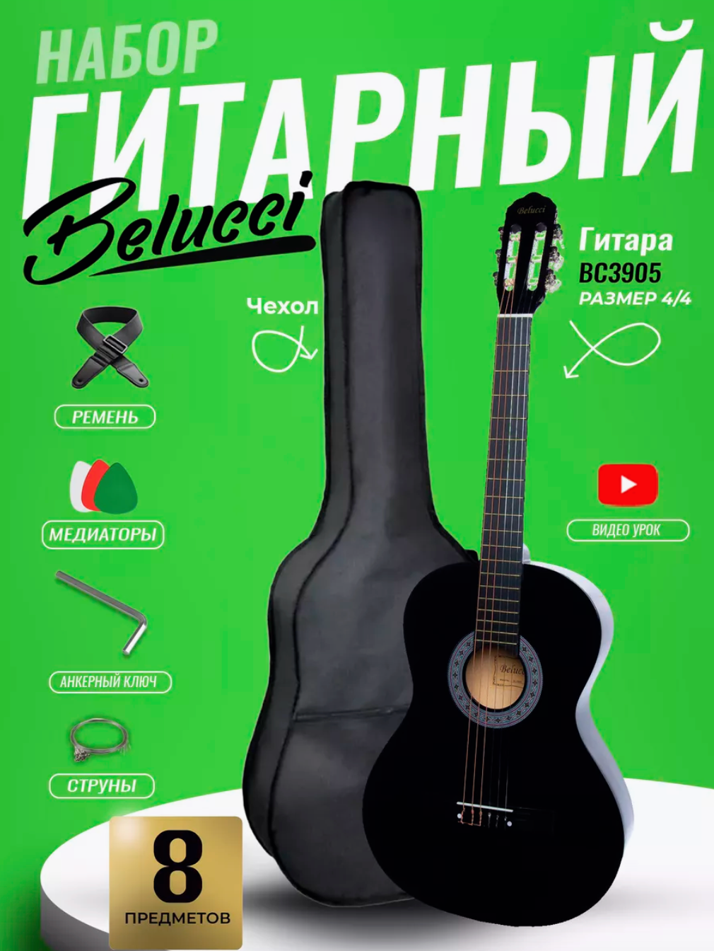 Ниже Вы можете прочитать отзывы на Классическая гитара 4/4 Belucci BC3905 BK, ознакомится с подробными характеристиками, посмотреть интересные обзоры и фотографии на Классическая гитара 4/4 Belucci BC3905 BK.