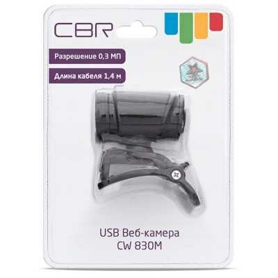 CBR CW 830M Black, Веб-камера с матрицей 0,3 МП, разрешение видео 640х480, USB 2.0, встроенный микрофон, ручная фокусировка, крепление на мониторе, длина кабеля 1,4 м, цвет чёрный
