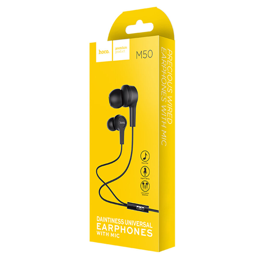 Наушники вкладыши с микрофоном Hoco M50 Daintiness Universal Black, мобильная гарнитура, черные