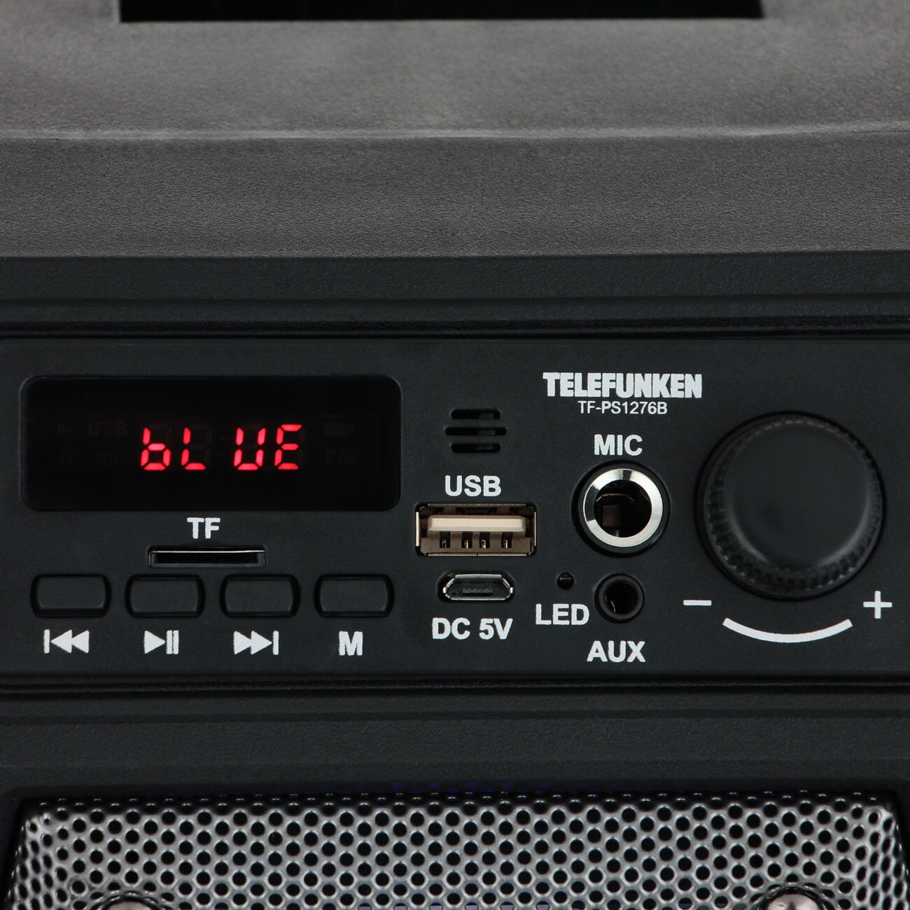 Портативная караоке система Telefunken TF-PS1276B, 35 Вт, FM, AUX, USB, BT, 1200 мАч, чёрная