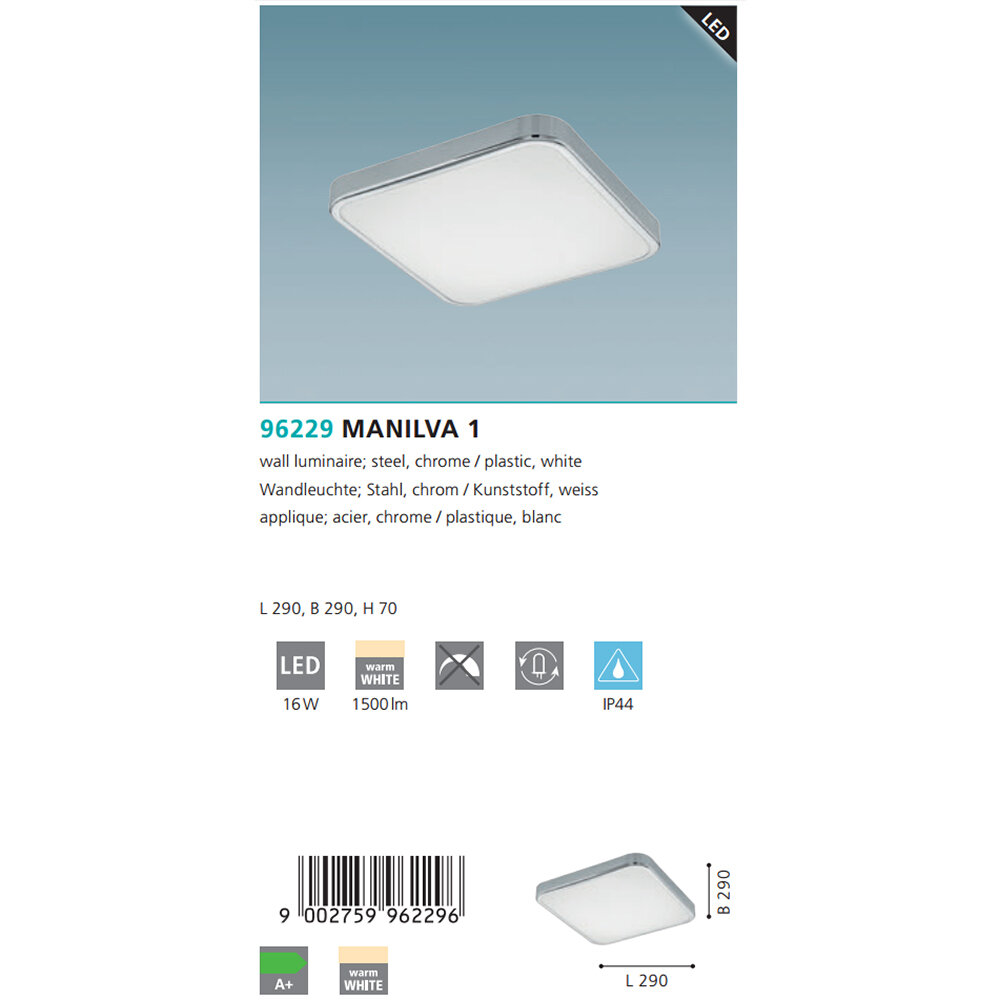 Eglo Светильник LED настенно-потолочный MANILVA 1, 16W(LED), 290х290, сталь, хром/пластик, белый 96229