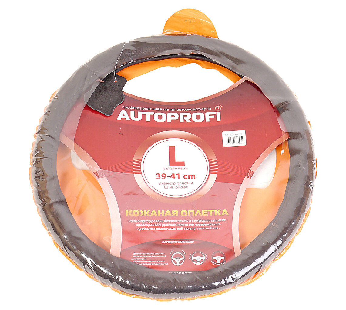 Оплетка AUTOPROFI натуральная, ребристая кожа (M), чёрный AP-265 BK (L)