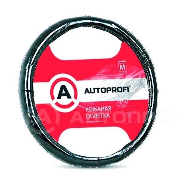 Кожаная оплётка руля AUTOPROFI AP-850 BK (M)
