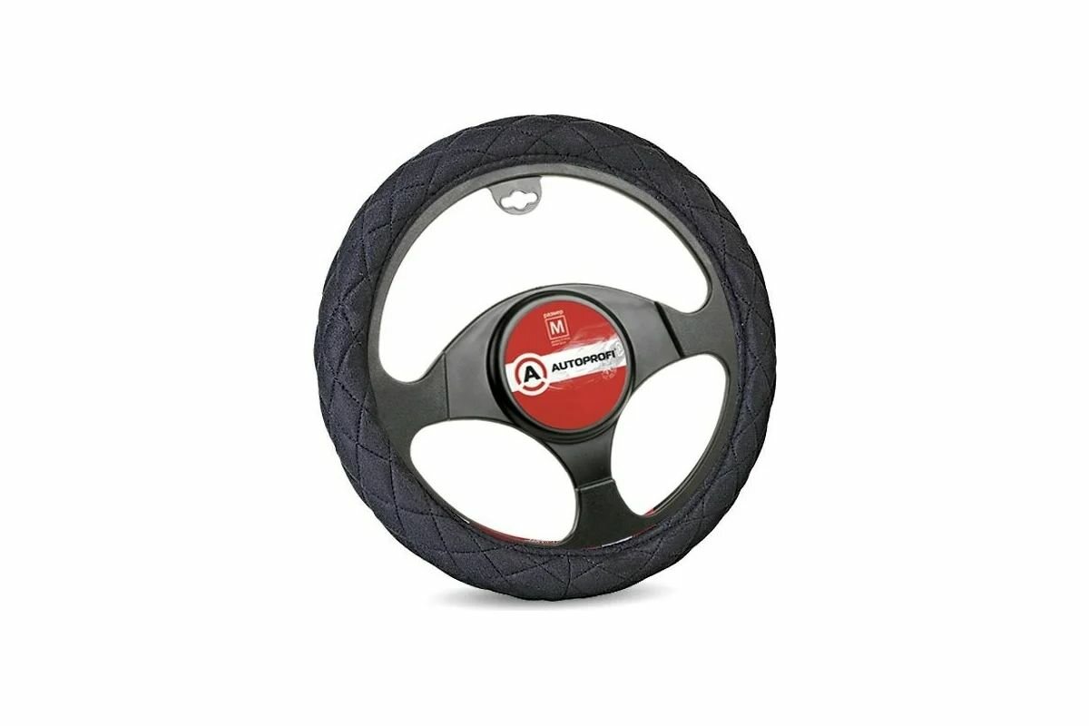 Купить Оплётка руля AUTOPROFI SP-9020 BK, алькантара, стёганая, наполнитель 1 см. поролон чёрный, разм. XL