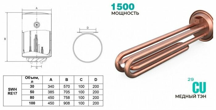 | Тип водонагревателя | накопительный |