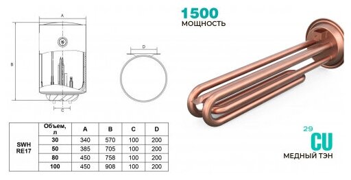 | Плюсы: | Надежная теплоизоляция. Магниевый анод увеличенной массы. |