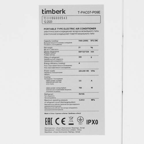 Мобильный кондиционер Timberk T-PAC07-P09E, белый