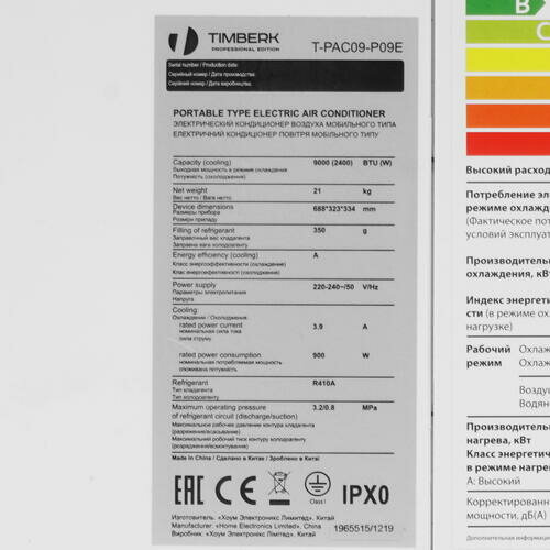 Мобильный кондиционер Timberk T-pac09-p09e T-pac09-p09e .