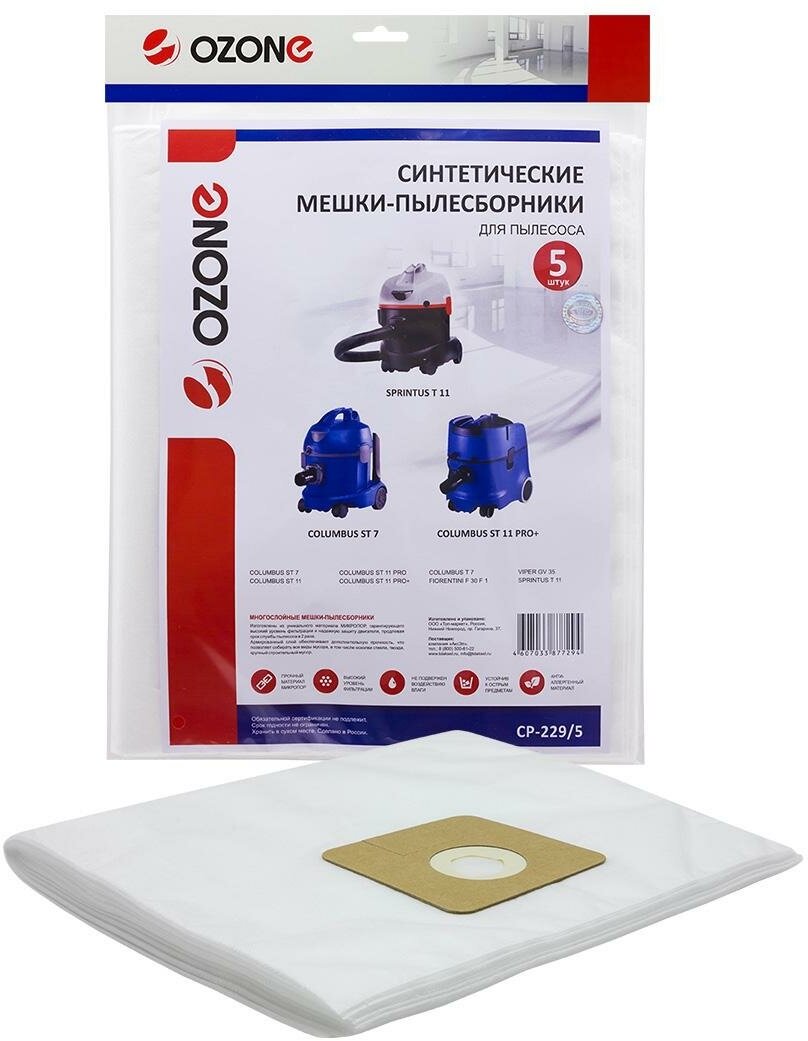 Купить Синтетические мешки-пылесборники Ozone CP-229/5 для пылесоса COLUMBUS ST 7, ST 11, 5 шт