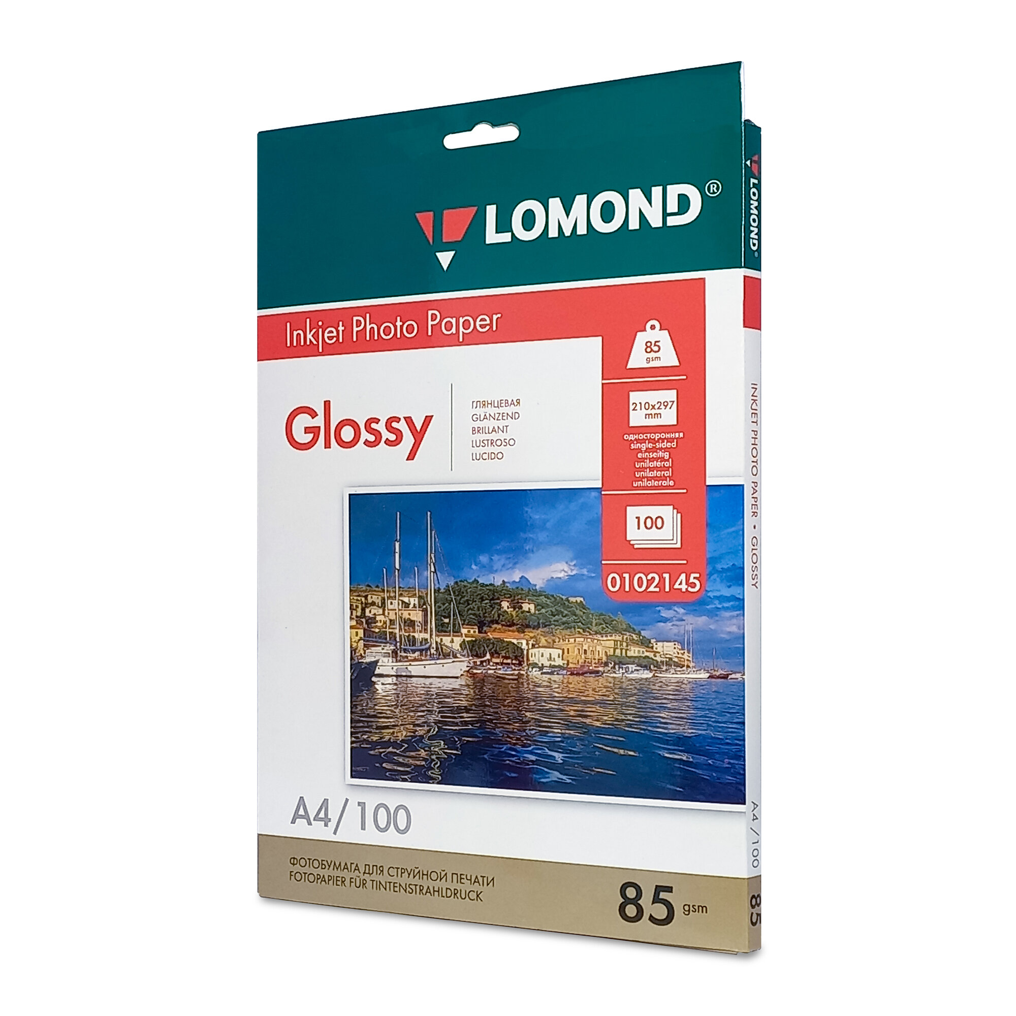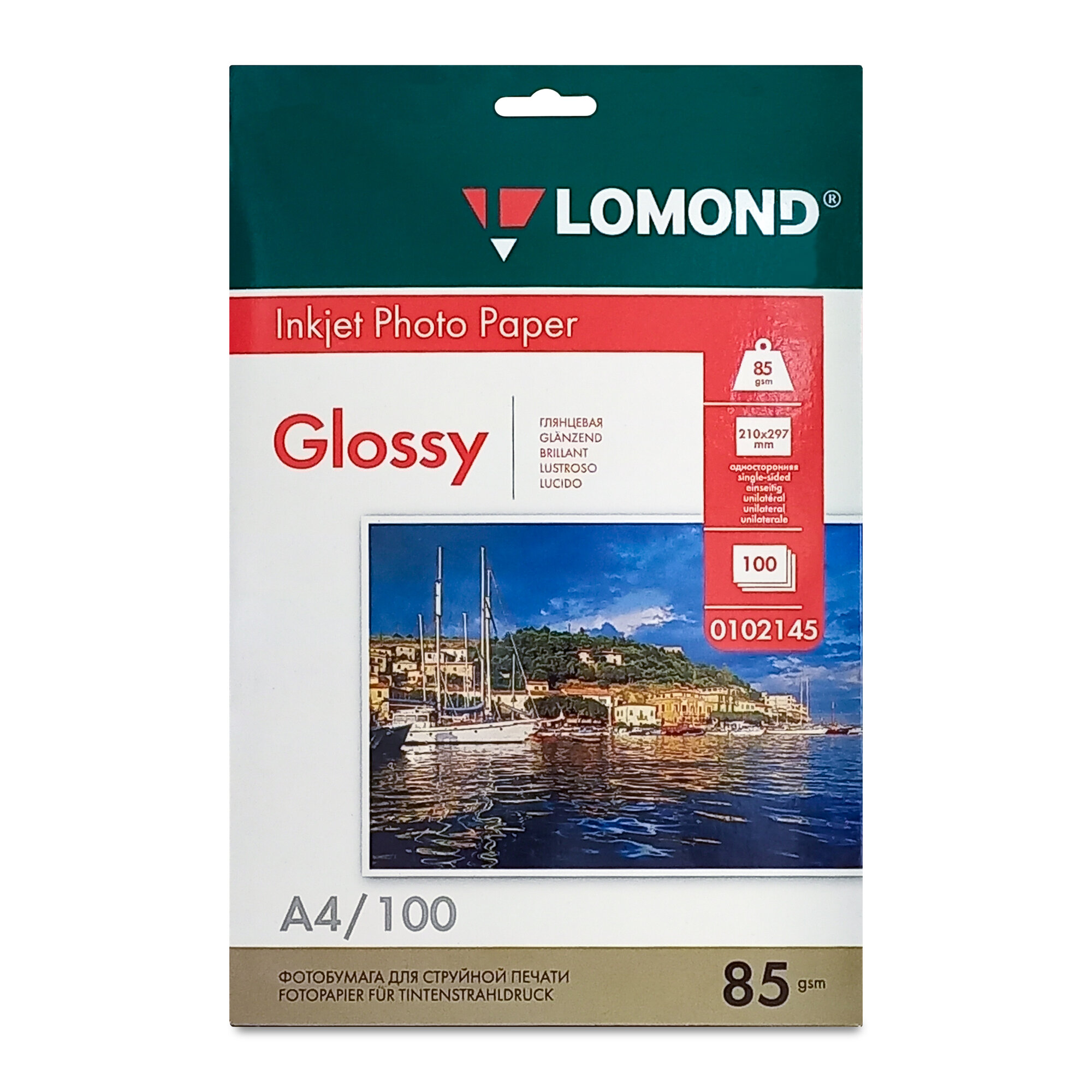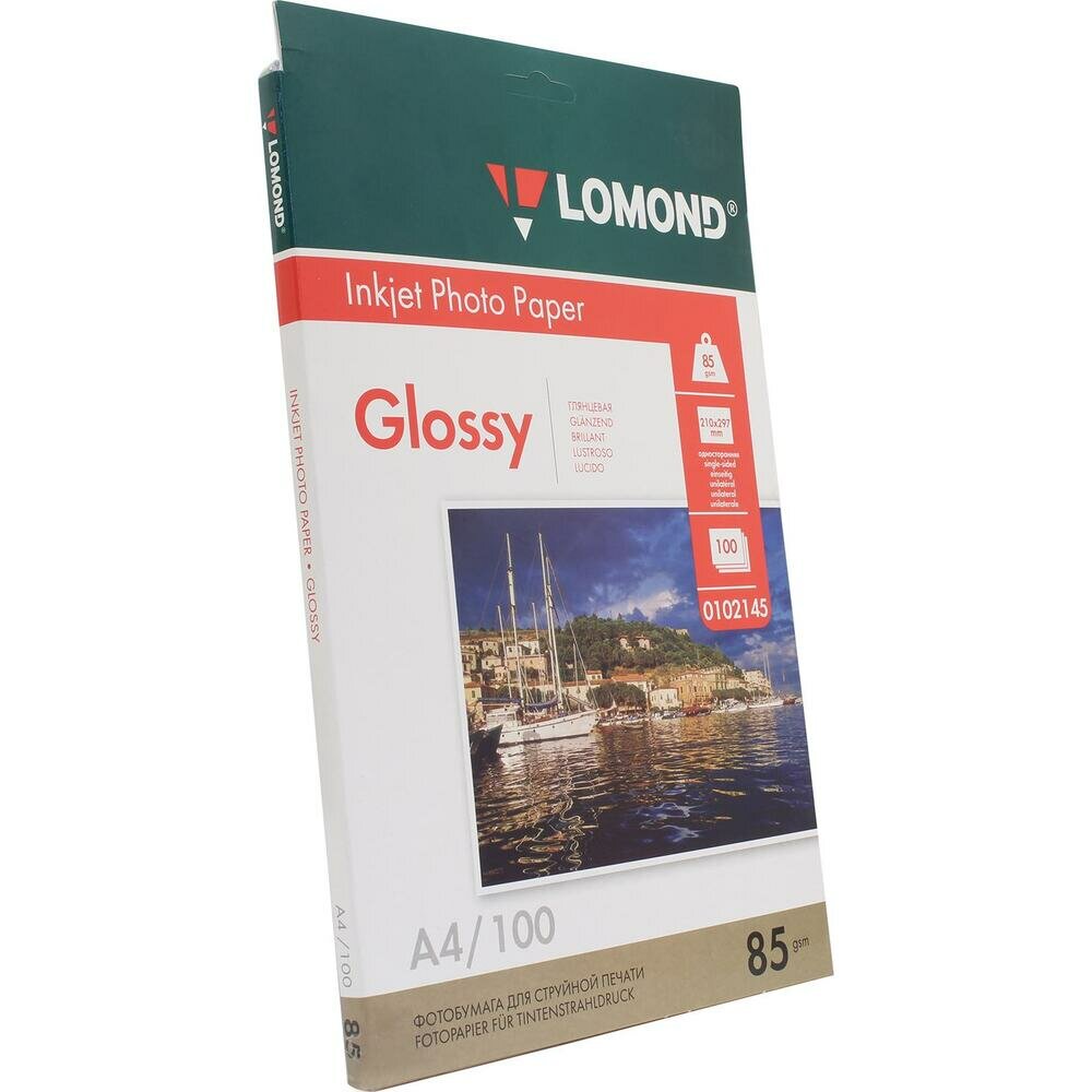 Фотобумага Lomond A4, 85г/м2, 100л, для струйной печати, белый, покрытие глянцевое [0102145]