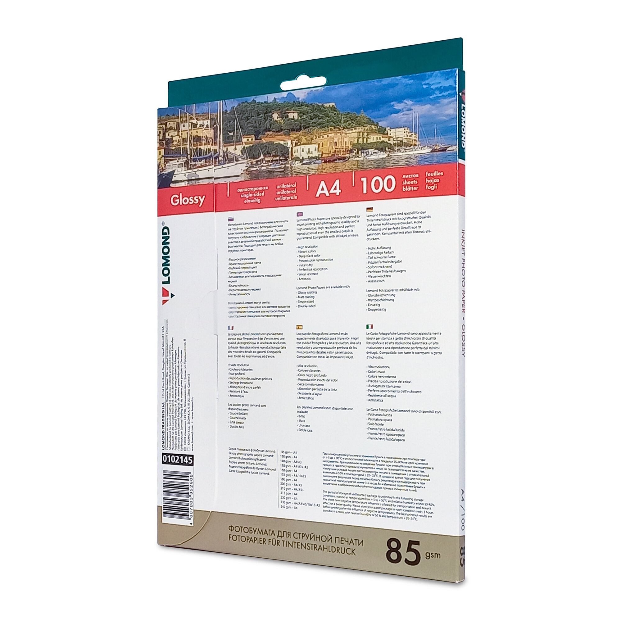 Фотобумага глянцевая, А4, 85 г/м2, односторонняя, 100 листов, LOMOND, 0102145